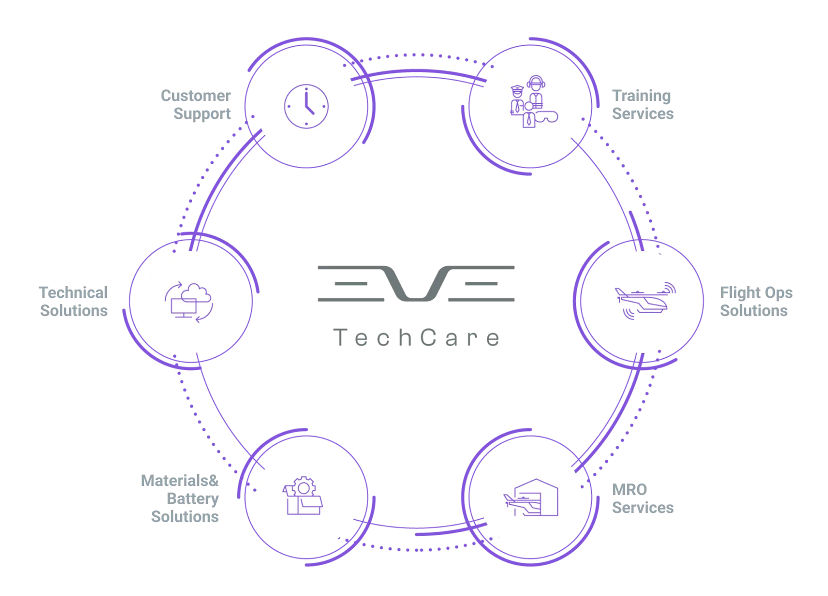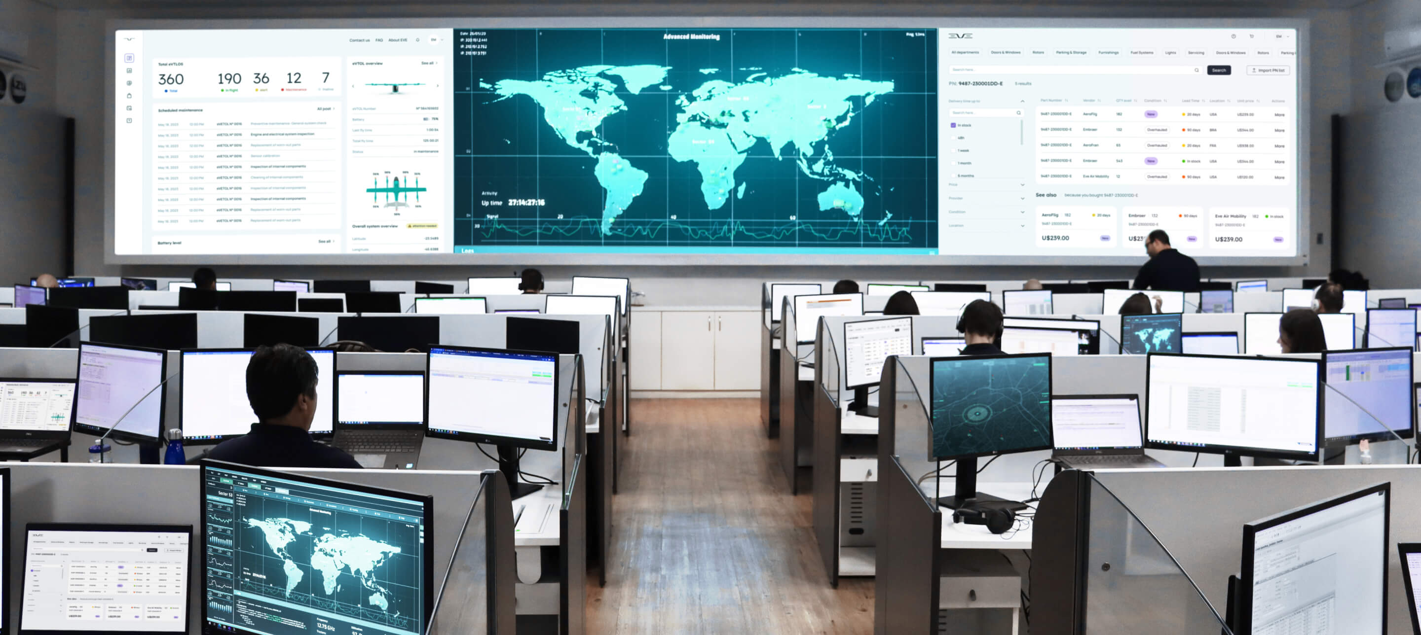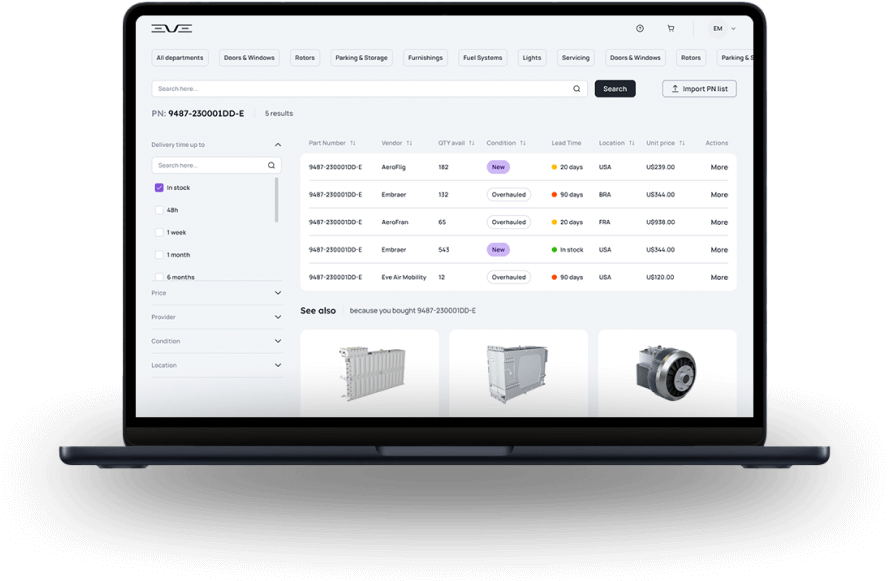 Our dedicated services ensure your fleet operates at peak performance and efficiency. With an experienced and responsible team available 24/7, a global network, and maximum integration among solutions, Eve TechCare offers peace of mind covering every aspect of your fleet. Our comprehensive portfolio, with full manufacturer support, ensures you have everything you need to keep your eVTOLs flying smoothly.